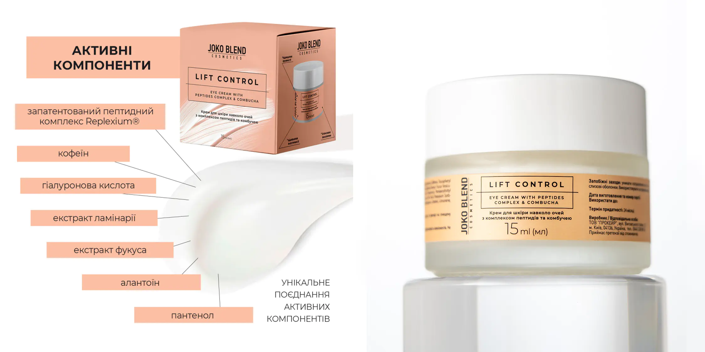 Крем для шкіри навколо очей з комплексом пептидів та комбучею Lift Control Joko Blend 15 мл