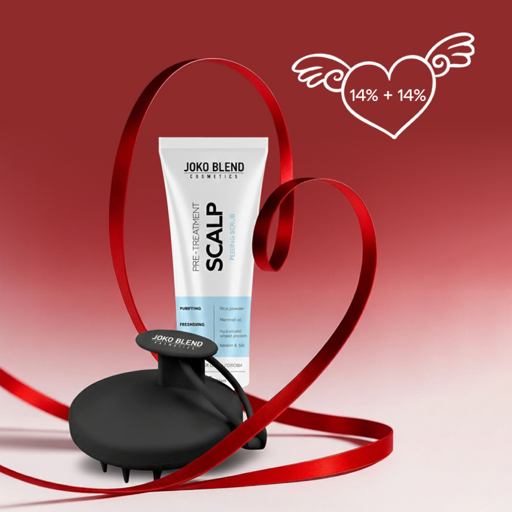 Комплекс для шкіри голови «Закохані Джоковинки» від Joko Blend — це продуманий догляд, який допомагає підтримувати чистоту, комфорт і здоровий стан шкіри голови. Він створений для тих моментів, коли хочеться сповільнитись, подбати про себе і зробити щоденний догляд приємнішим. Пілінг м’яко очищає від надлишку себуму, а масажна щітка делікатно стимулює мікроциркуляцію, даруючи відчуття розслаблення й свіжості.