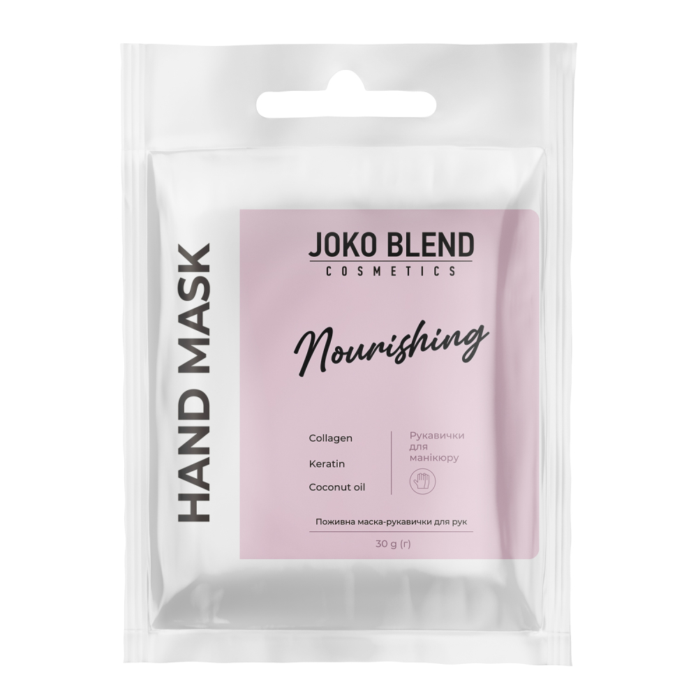 Рукавички для манікюру ТМ Joko Blend створені спеціально для догляду за руками. Маска пом'якшує кутикулу, зміцнює нігті і зволожує шкіру. Колаген в складі маски забезпечує шкірі пружність і еластичність. Після використання рукавичок нігті набувають білий колір, руки виглядають доглянутими і зволоженими.