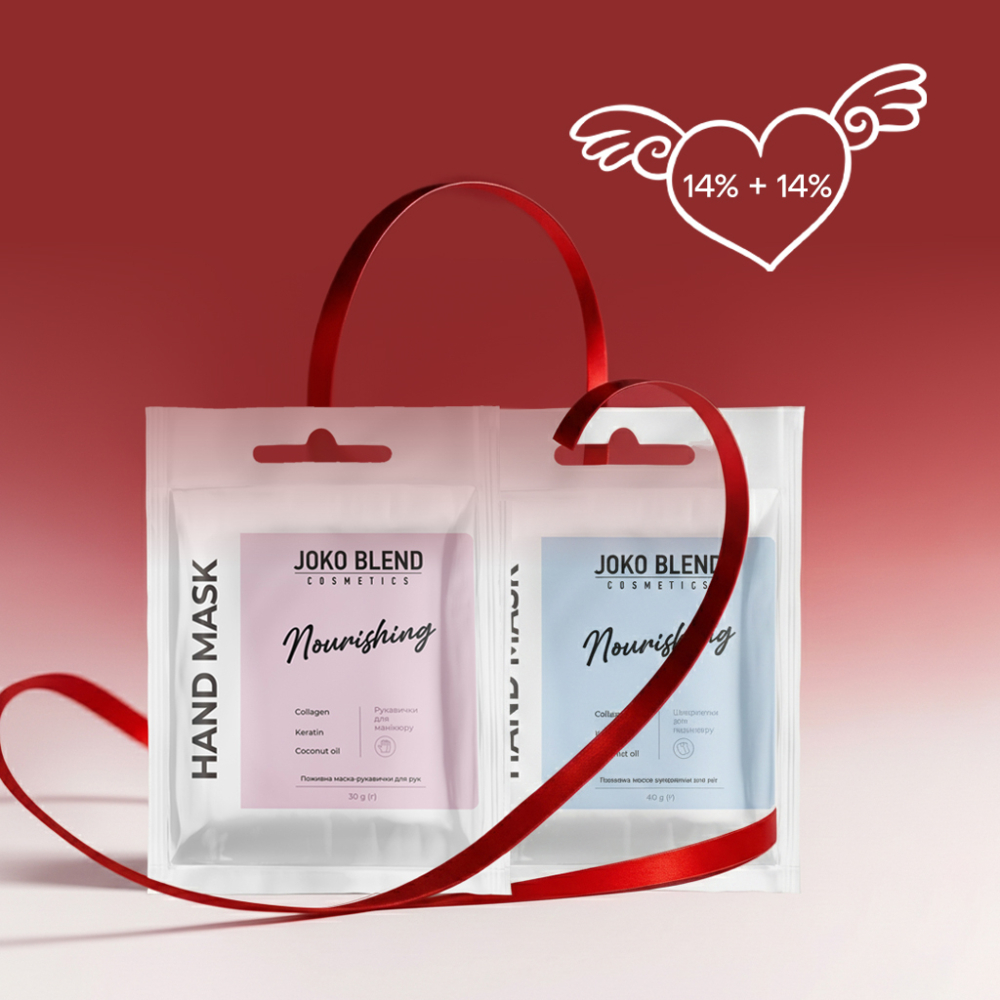 Комплекс для рук та ніг «Закохані Джоковинки» від Joko Blend — це продуманий догляд, спрямований на зволоження, живлення та відновлення шкіри рук і ніг. Набір містить поживну маску-рукавички для рук та поживну маску-шкарпетки для ніг, які забезпечують інтенсивне живлення, м’якість і комфорт після процедури. Ідеальний для регулярного догляду, коли хочеться подарувати своїм рукам і ногам відчуття ніжності й турботи.
