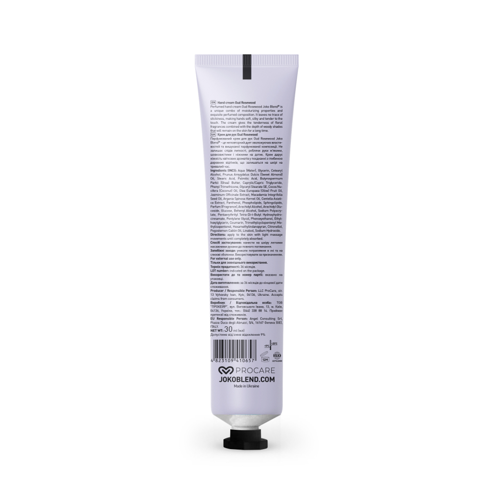 Крем для рук парфумований Oud Rosewood Joko Blend 30 мл — це неповторний дует зволожуючих властивостей та вишуканої парфумованої композиції. Не залишає слідів липкості, роблячи руки м'якими, шовковистими та ніжними на дотик. Крем дарує ніжність квіткових ароматів у поєднанні з глибиною деревних відтінків, що залишаться на шкірі на тривалий час.