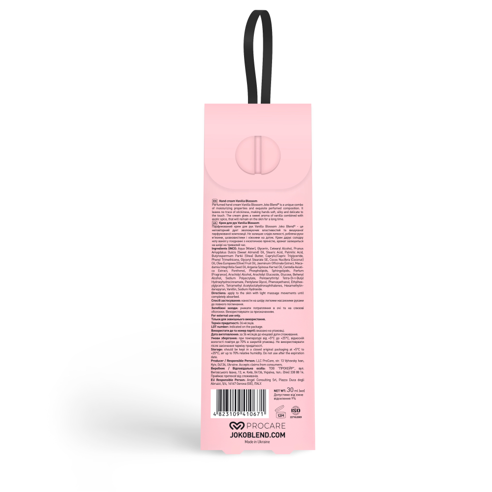Парфумований крем для рук Vanilla Blossom Joko Blend™ - це неповторний дует зволожуючих властивостей та вишуканої парфумованої композиції. Не залишає слідів липкості, роблячи руки м'якими, шовковистими і ніжними на дотик. Крем дарує солодку ноту ванілі у поєднанні з екзотичною пряністю, аромат залишиться на шкірі на тривалий час.