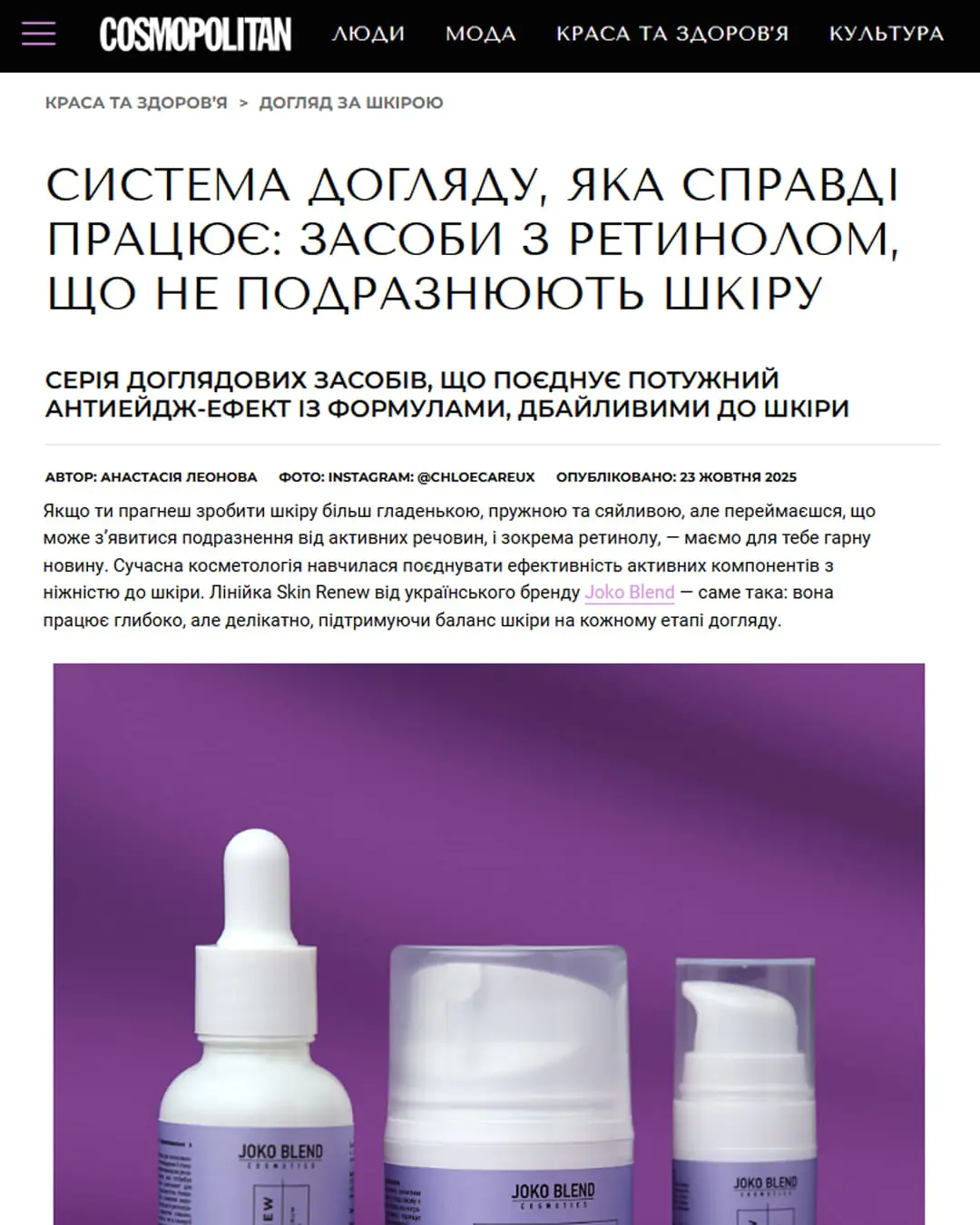 Joko Blend стає все більш впізнаваним брендом у beauty-світі та привертає увагу українських медіа. Наші продукти регулярно потрапляють у добірки топових beauty- та lifestyle-видань, а редактори й експерти відзначають поєднання ефективності, інноваційних формул та доступності.