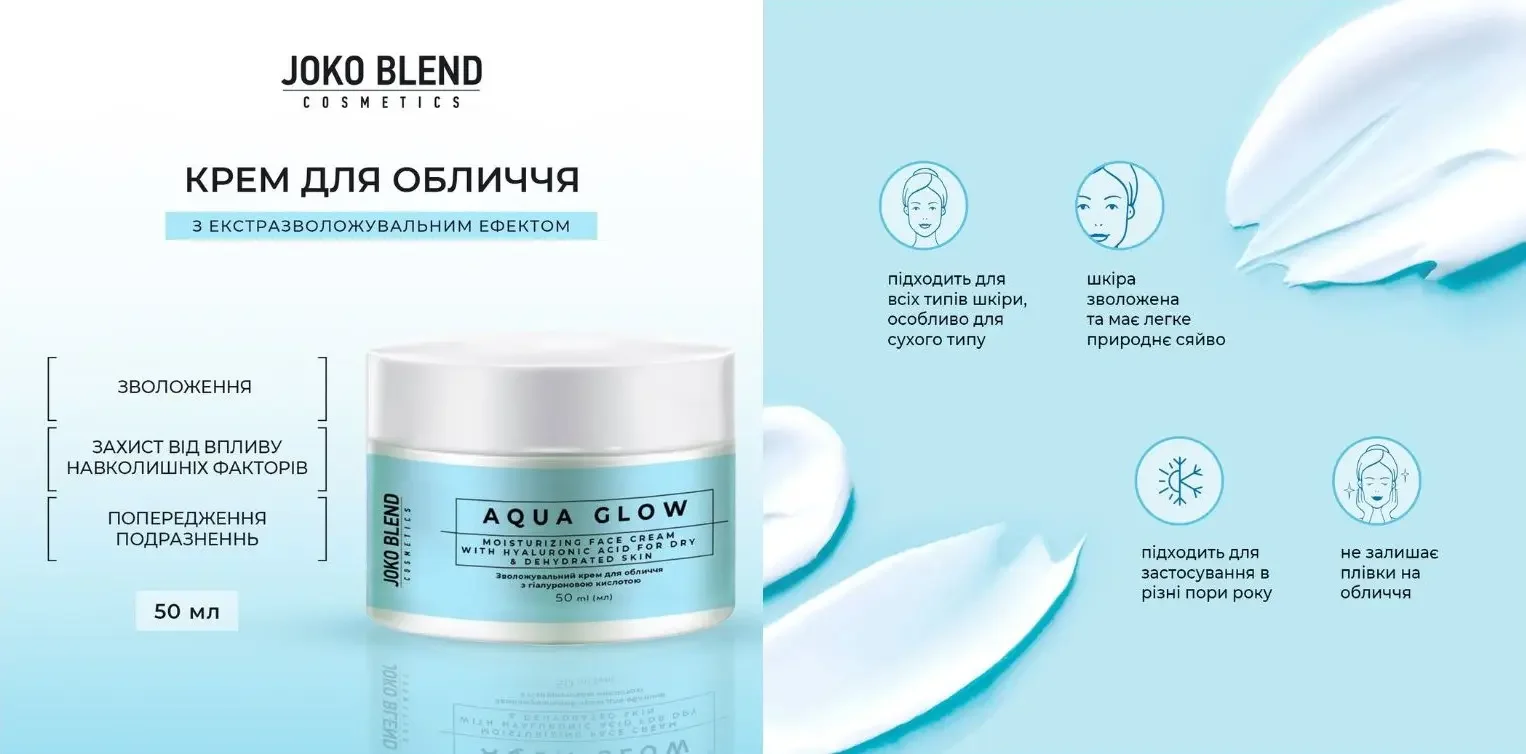 Бренд Joko Blend пропонує повний асортимент засобів для щоденного догляду за сухою шкірою обличчя: м'які очищувальні засоби, зволожуючі сироватки, живильні маски, креми з SPF.
